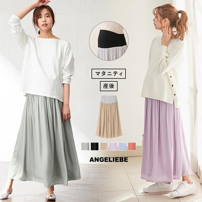 信用 Sale マタニティ 服 スカート 産前産後対応 ヴィンテージ サテン ギャザー ロングスカート 妊婦服 マタニティ